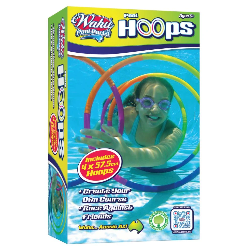 hoops. These hoops will sink to the bottom of the pool and then magically stand upright. Kids will love to swim through a series of hoops as they gain confidence underwater.